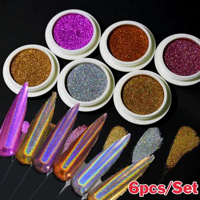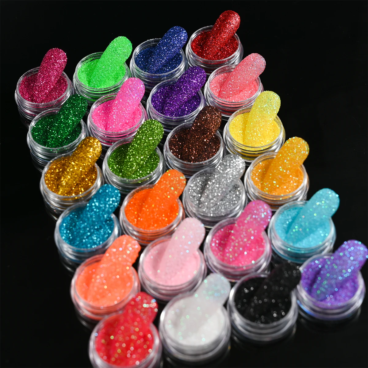 24pcs/Set Sparkly Holographic Fine Sugar Nail Powder Diamond Chrome Pigment Dust For Gel Polish Glitter Manicure Accessories