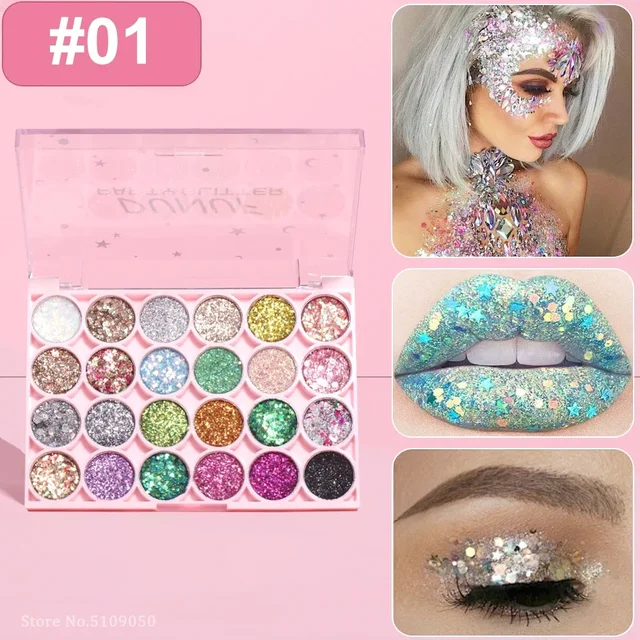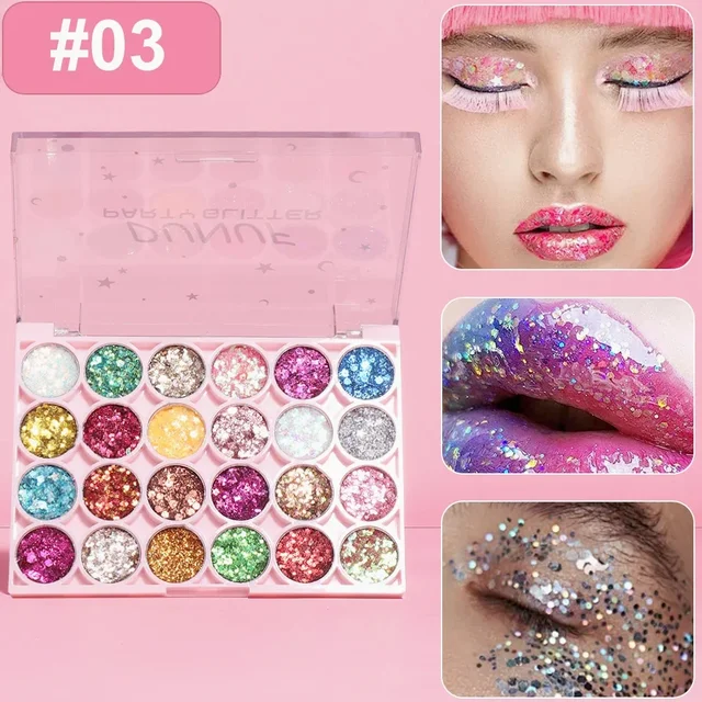 24Colors Body Face Glitter Gel Palette Waterproof Eye Hair Loose Sequins Eyeshadow Multifunctional Party Deco Makeup Cosmetics