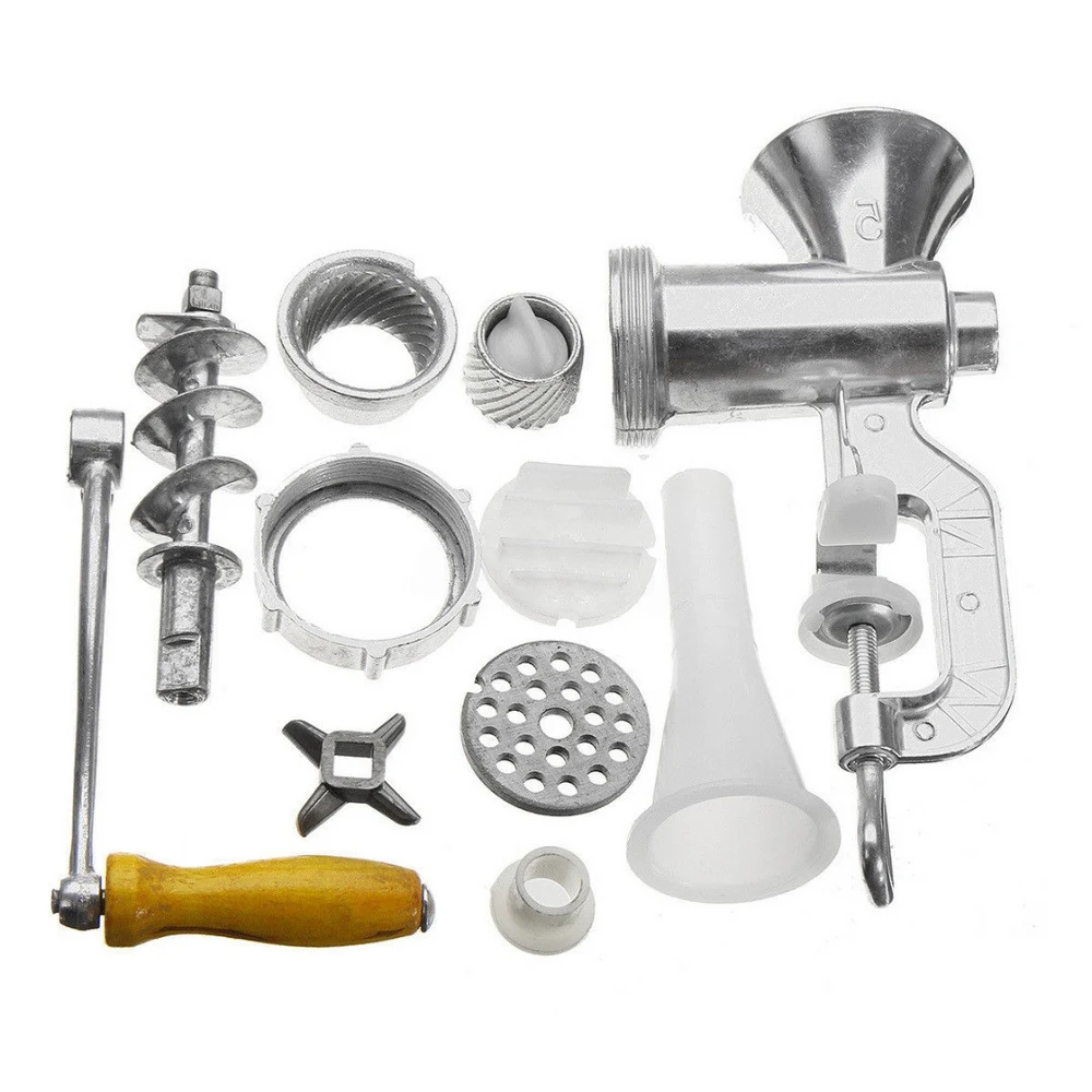 Material: Aluminum Alloy Model Number: Manual Meat Grinders Origin: Mainland China Feature:Made of high-quality aluminum alloy material, non-toxic, sturdy and durable.It is ergonomically