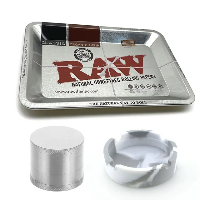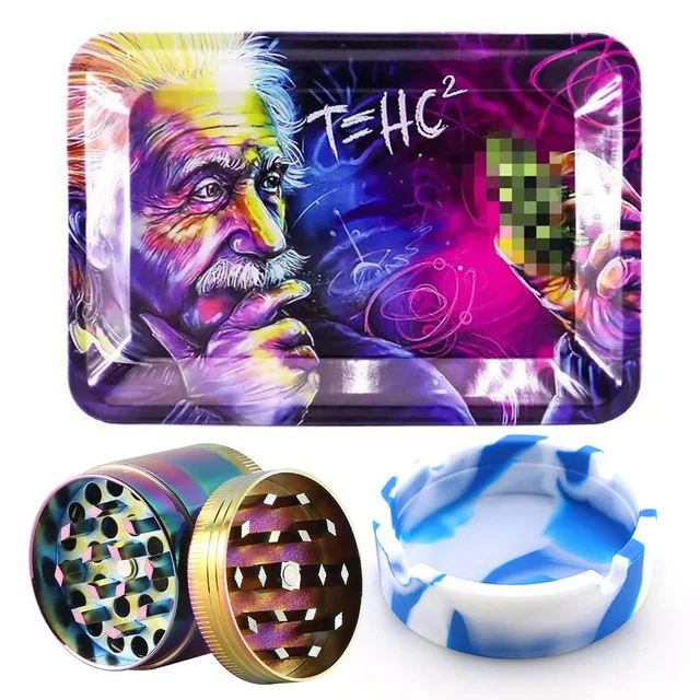 18cmx12.5cm Herb Tobacco Rolling Tray Set Silicone Ashtray Ash Tray 40mm Metal Herbal Grinder Kit Smoking Accessories