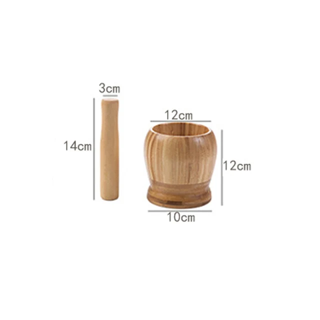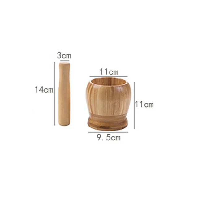 1PC Kitchen Tool Bamboo Garlic Mortar Ginger Spices Grinder Household Manual Solid Wood Garlic Pestle Mortar And Pestle Set
