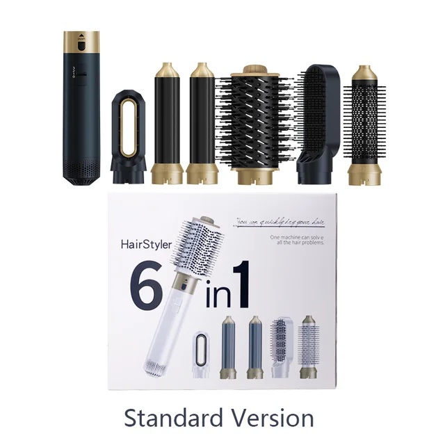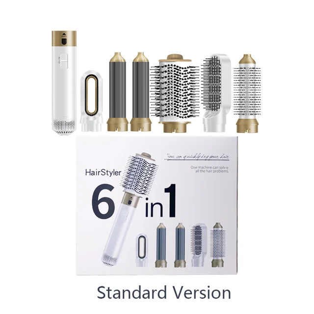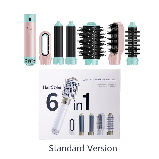 6 In 1 Hair Dryer Brush Electric Blow Dryer Comb Hairdryer Negative Ionic Hair Blower Brush Air Styling Hair Curler Curling Wand