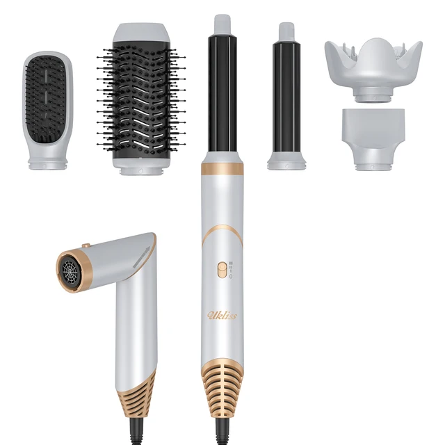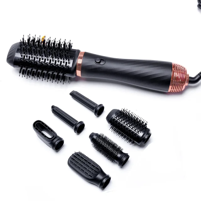 6 In 1 Hair Dryer Brush Electric Hot Air Straightener Multi Hair Styling Blowing Comb Rotating Curling Iron Set Professional