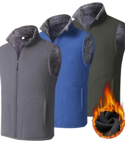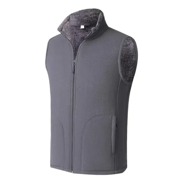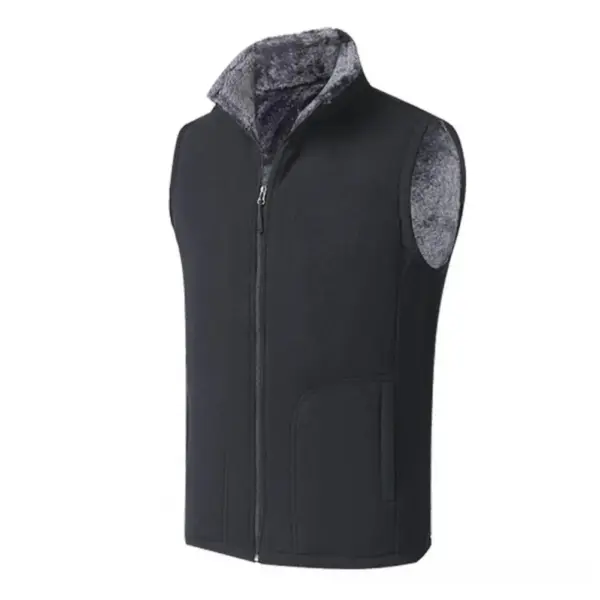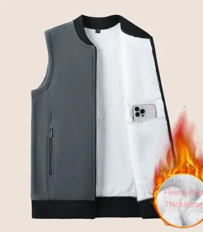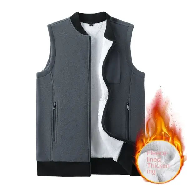 Men Winter Vest Sleeveless Stand Collar Solid Color Fleece Thick Keep Warm Plus Size Neck Winter Waistcoat for Daily