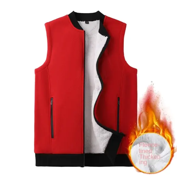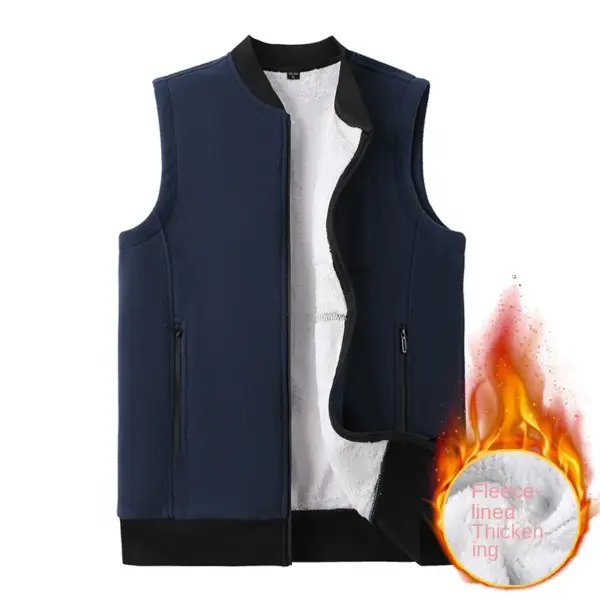 Men Winter Vest Sleeveless Stand Collar Solid Color Fleece Thick Keep Warm Plus Size Neck Protection Winter Waistcoat for Daily