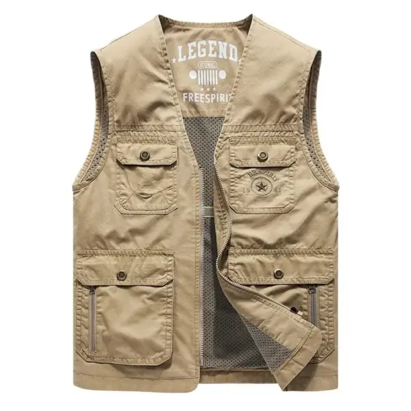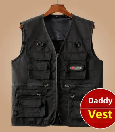 Men’s Casual Fishing Outdoor Vest Spring Autumn Middle Age Multi Pocket Dad Clothes Shoulder Jacket Loose Fit Chinese Brand