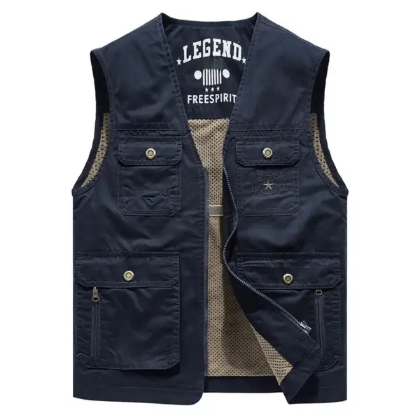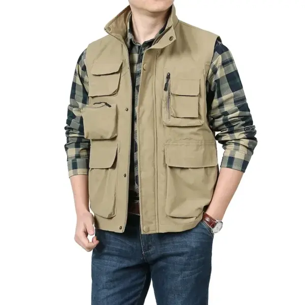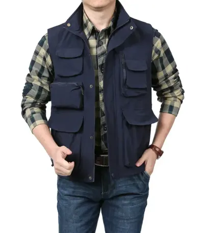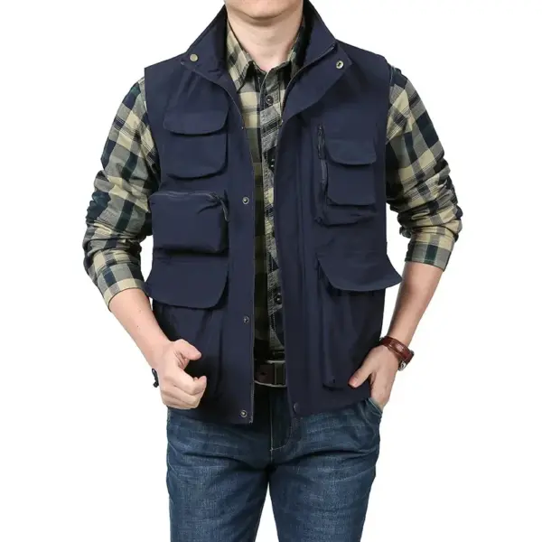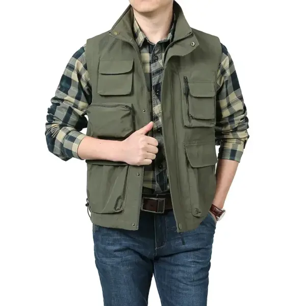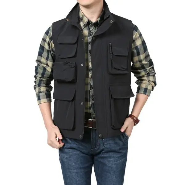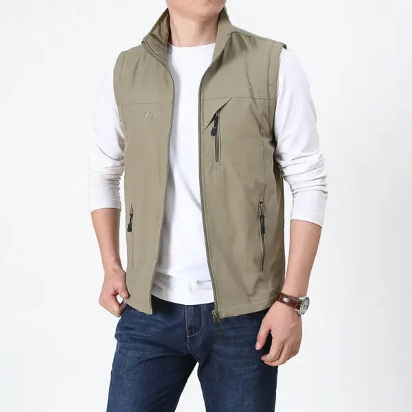 Men’s Casual Quick-drying Vest Fashion Solid Color Multi-pocket Zipper Sleeveless Vest Coat Outdoor Fishing Photography Vest
