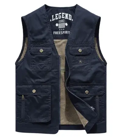 Men’s Casual Outdoor Cotton Vest V-Neck Fishing Photography Director’s Sleeveless Jacket Loose Fit Fashionable Spring Autumn