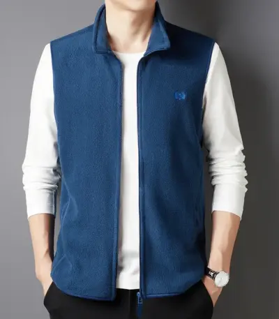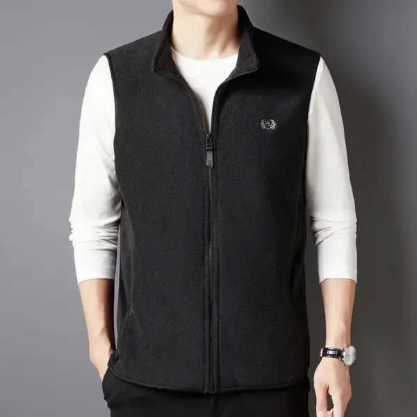 Men’s Casual and Fashionable Fleece Embroidered Vest with Plush Jacket