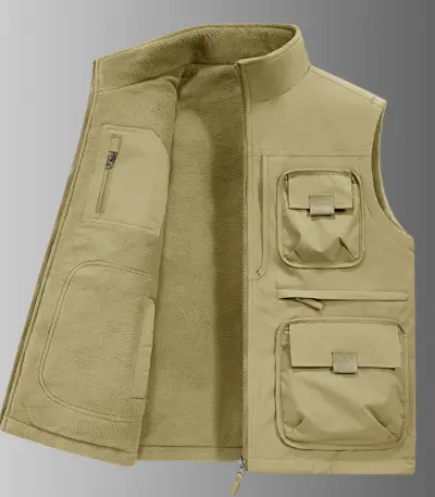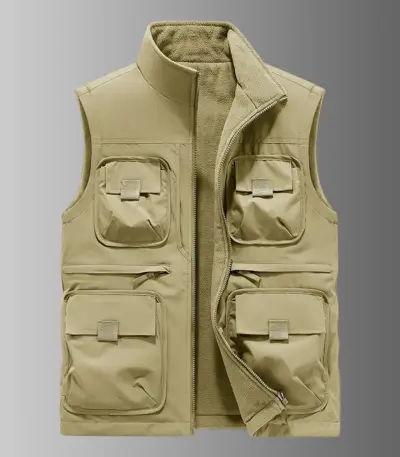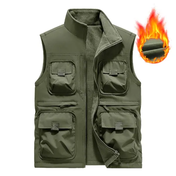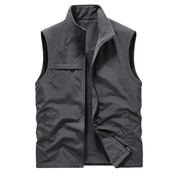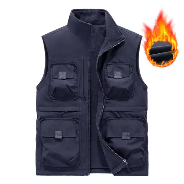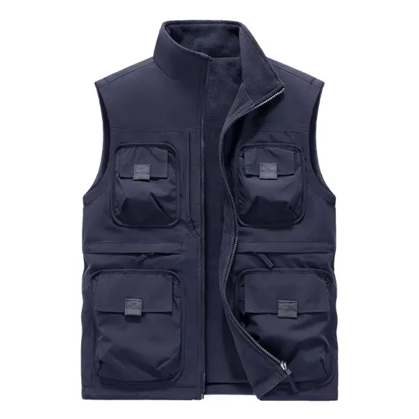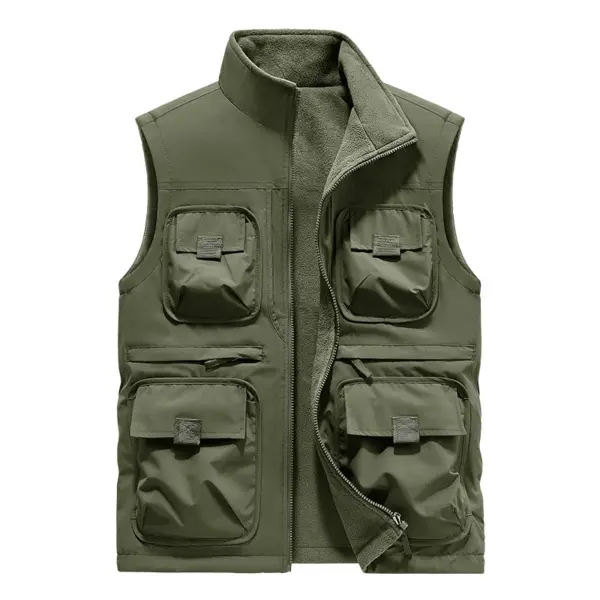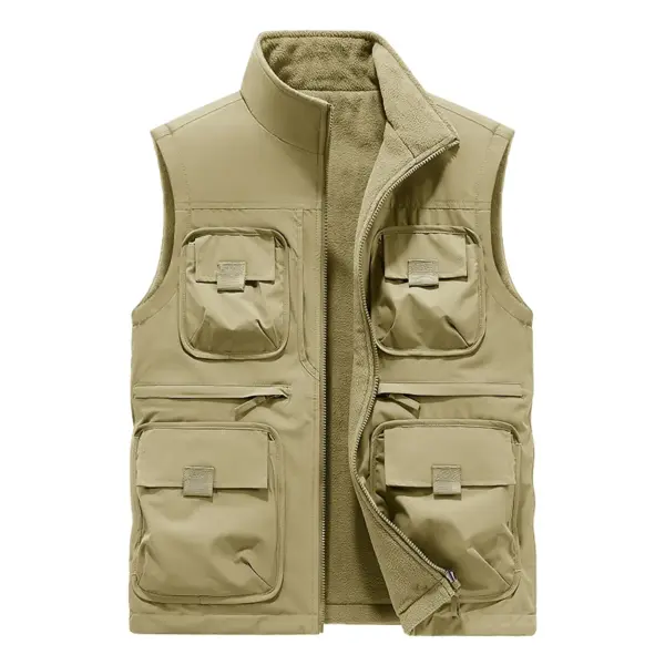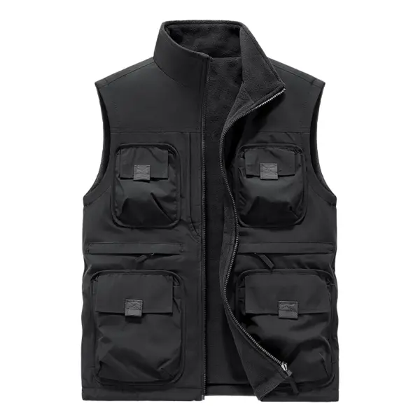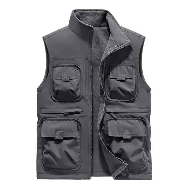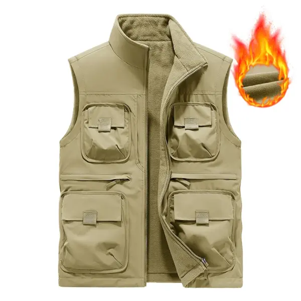 Men’s Vest Plus Velvet Double-sided Wear Male Outdoor Casual Loose Large Size Vest Men’s Tooling Multi-bag Jacket Fishing Vests