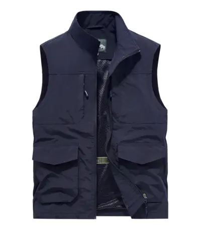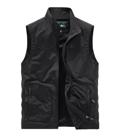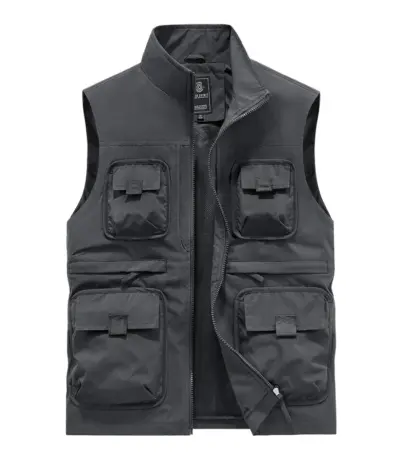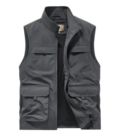 Men’s vest with multiple pockets stand up collar loose sleeveless jacket simple casual trendy and fashionable men’s camisole