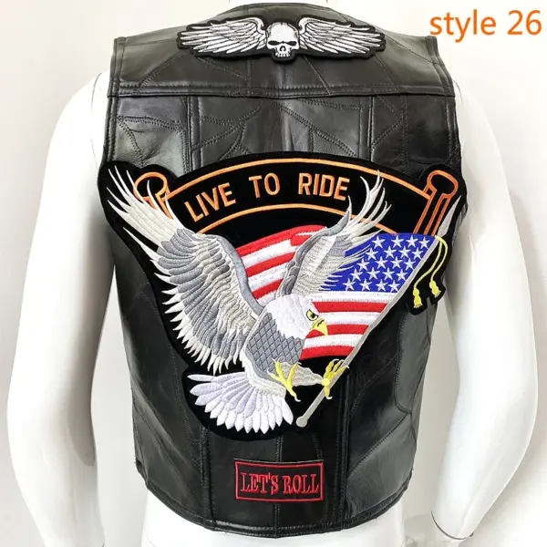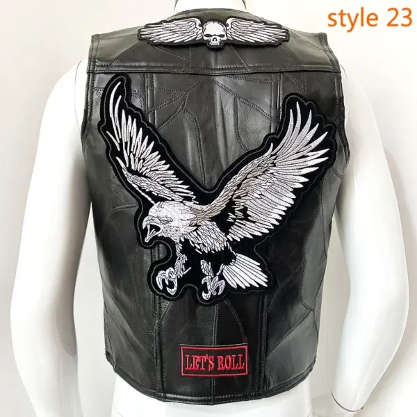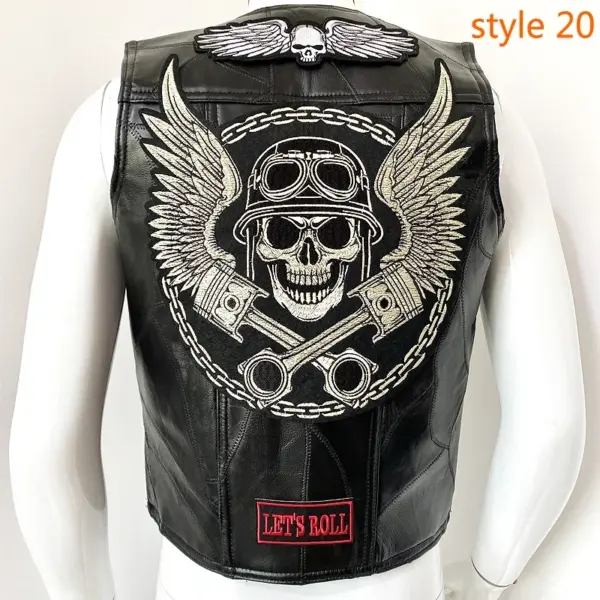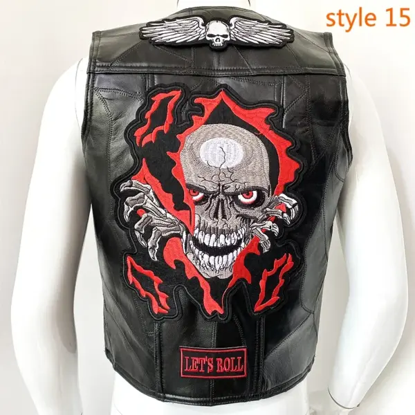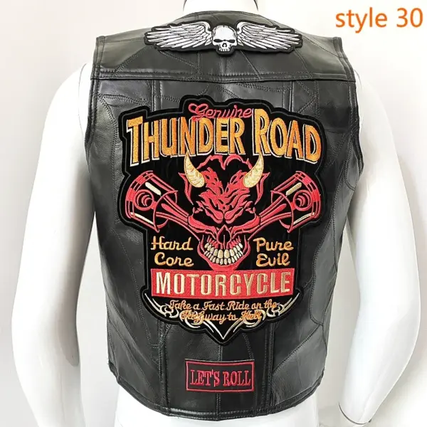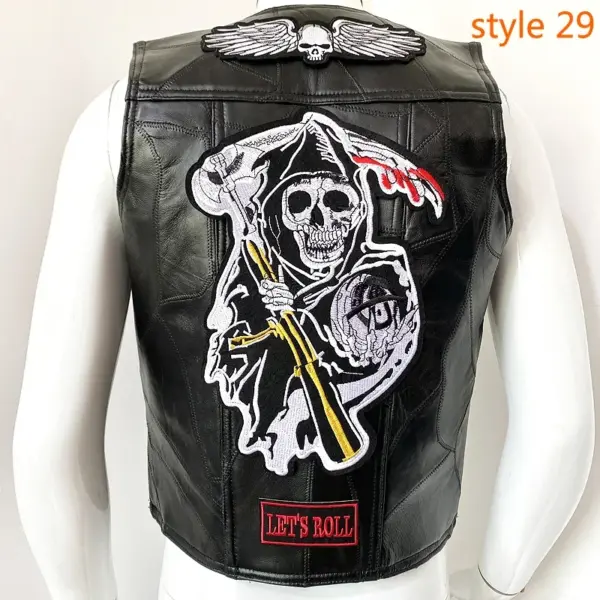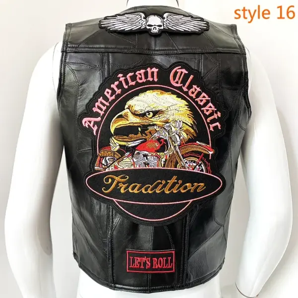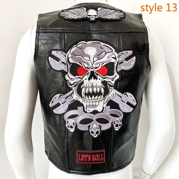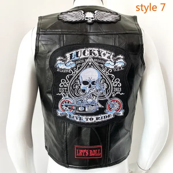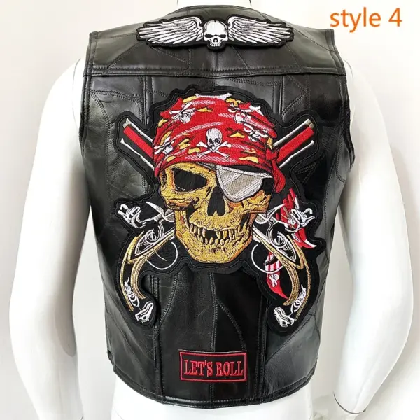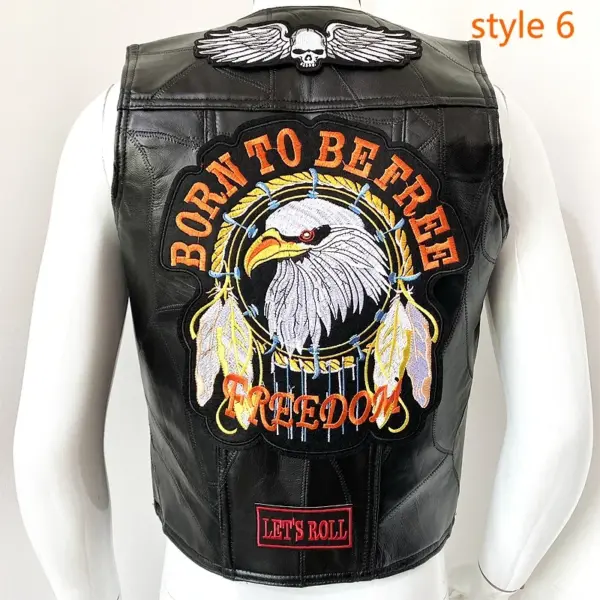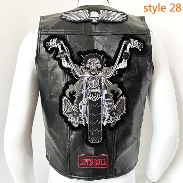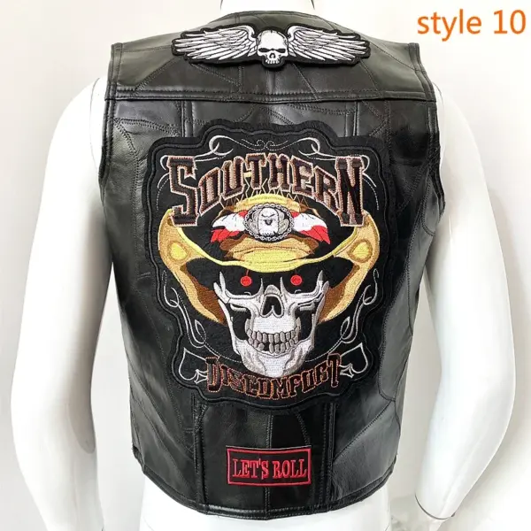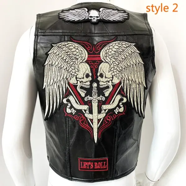 New Men Leather Motorcycle Vest Fashion Embroidery Sleeveless Jacket Sheepski Leather Club Riding Biker Vests Waistcoat
