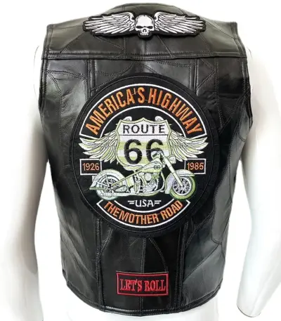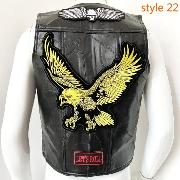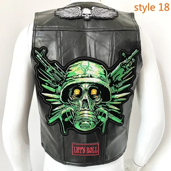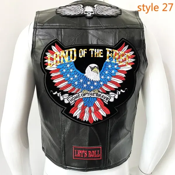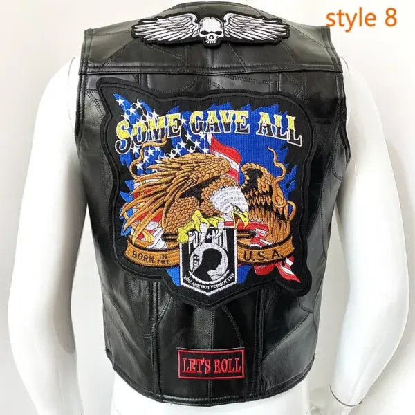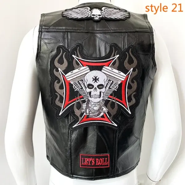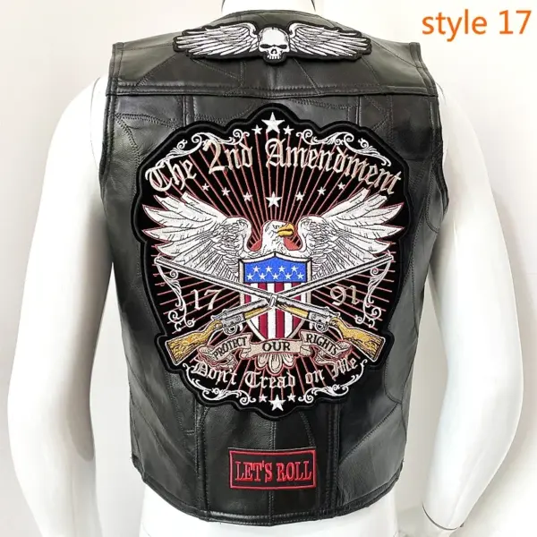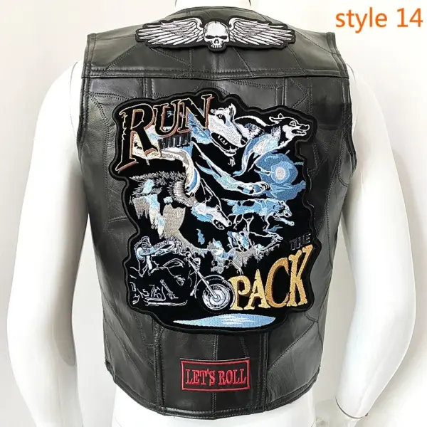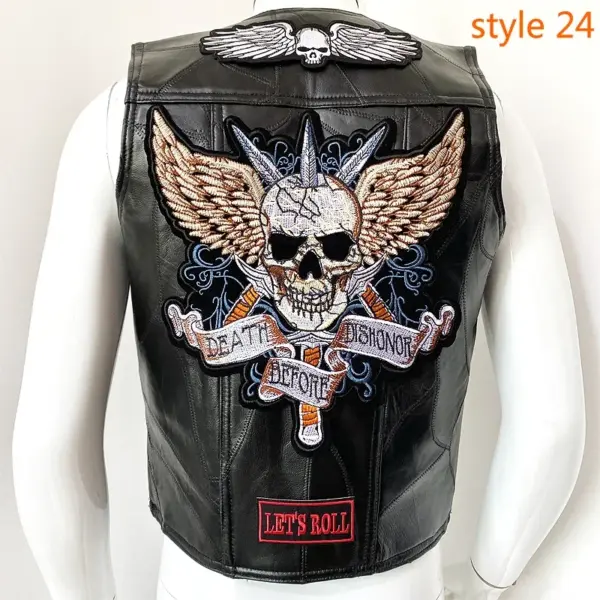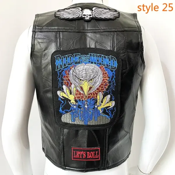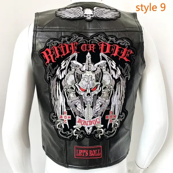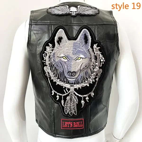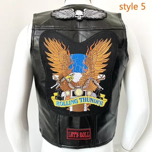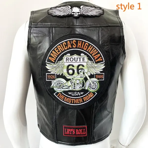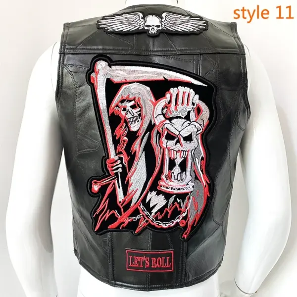New Men Leather Motorcycle Vest Fashion Embroidery Sleeveless Jacket Sheepski Leather Club Riding Biker Vests Waistcoat