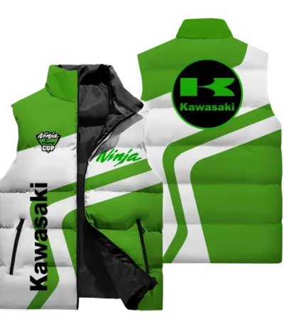New Kawasaki Cycling Vest and Kawasaki Logo 3D Digital Printed Jacket, Kawasaki Motorcycle Cycling Stand Up Collar Zipper Jacket