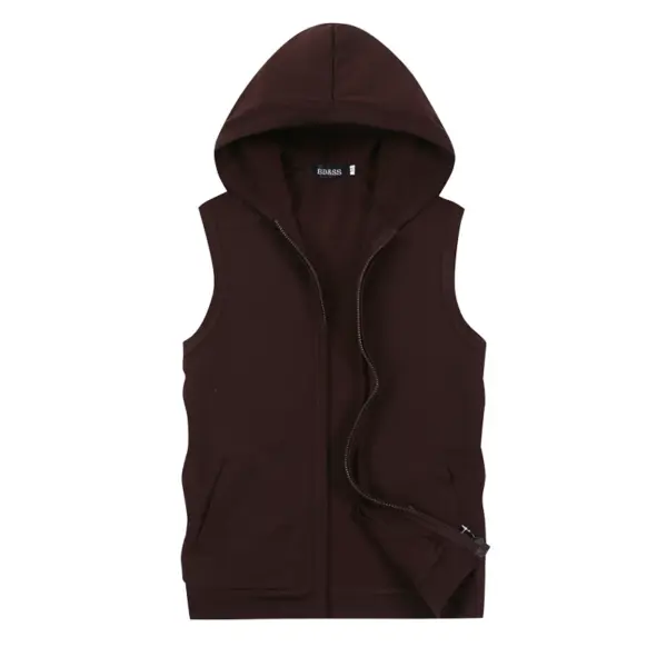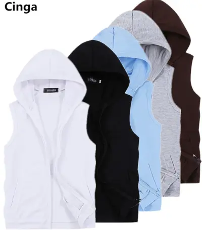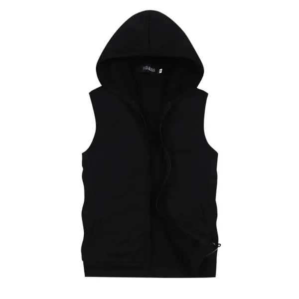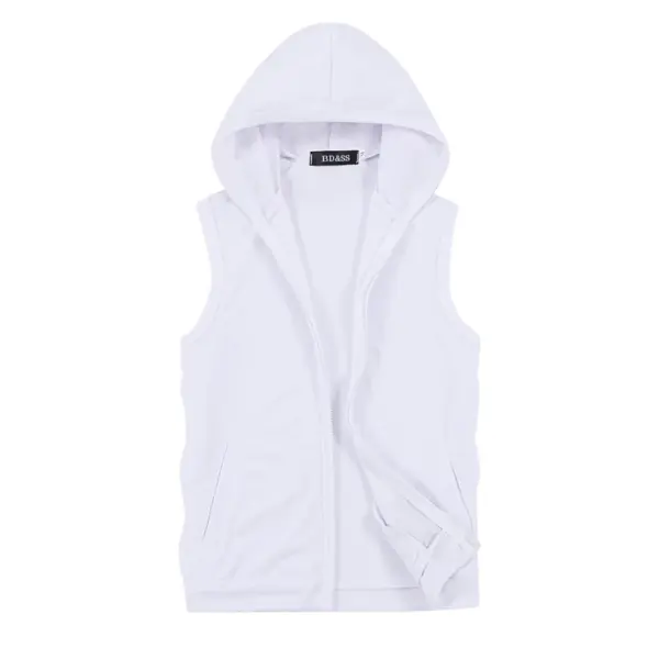 2025 Summer Hooded Sleeveless Jacket Men Asian Size M-5XL Black Blue White Gray Zipper Control Mens Casual Jacket Slim Fit Tops