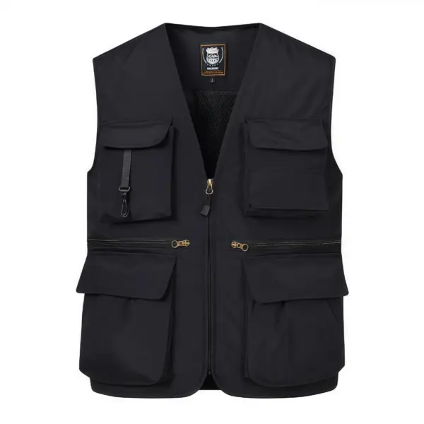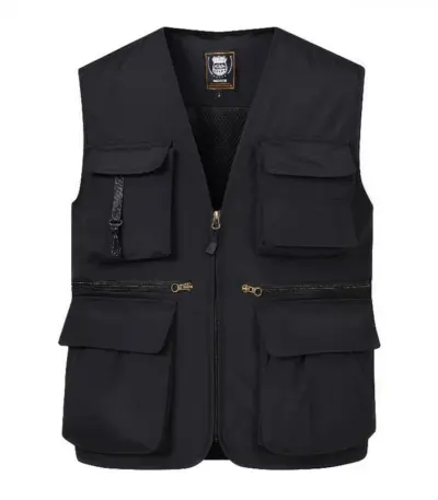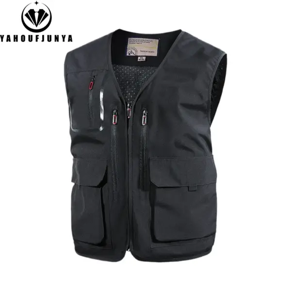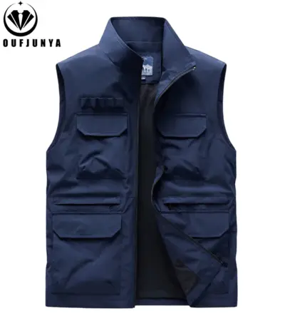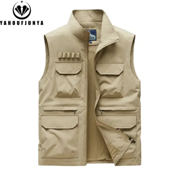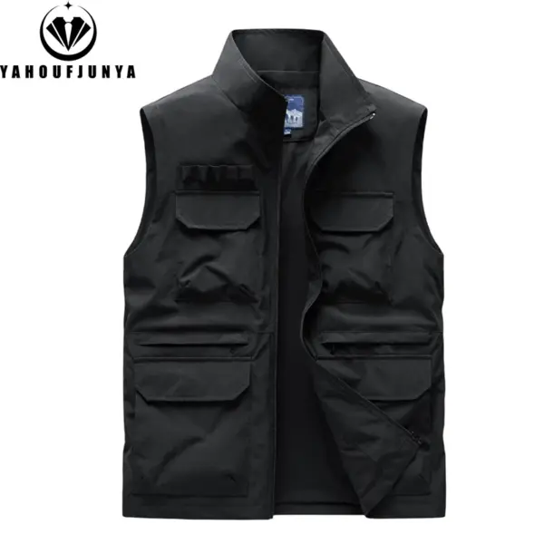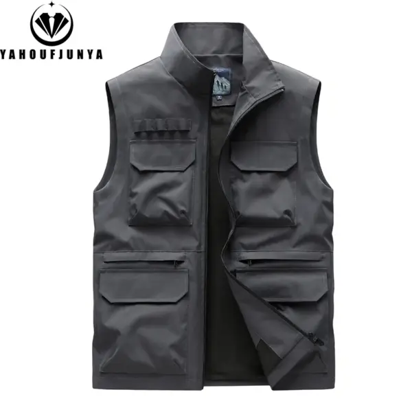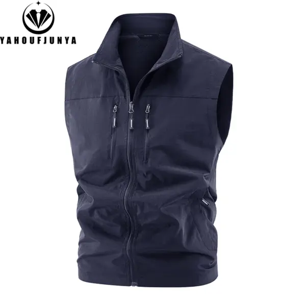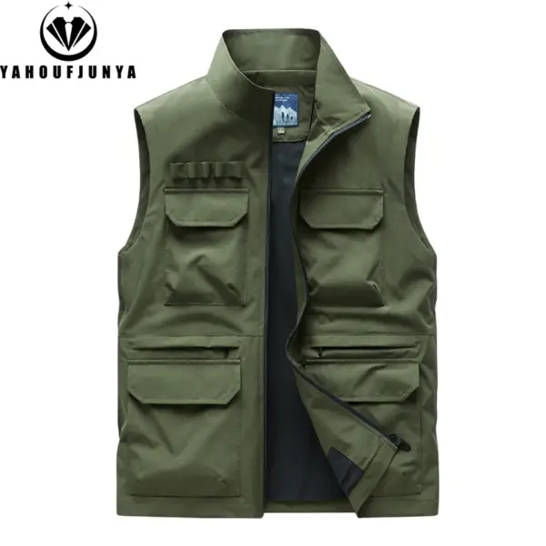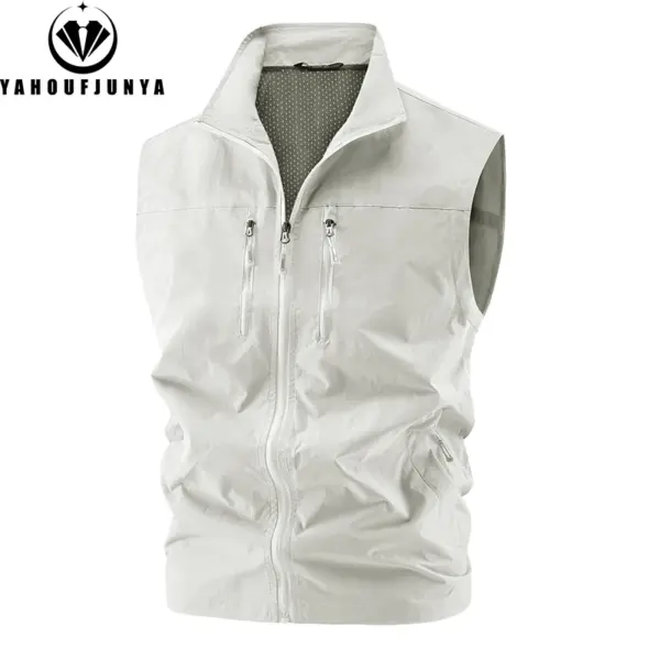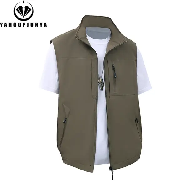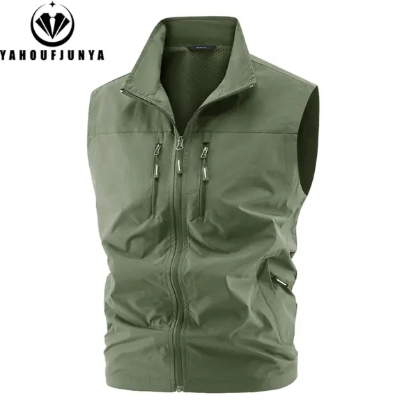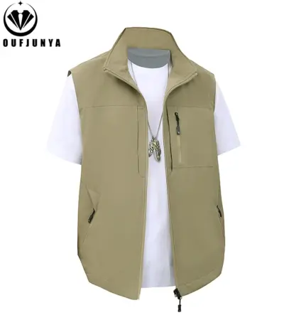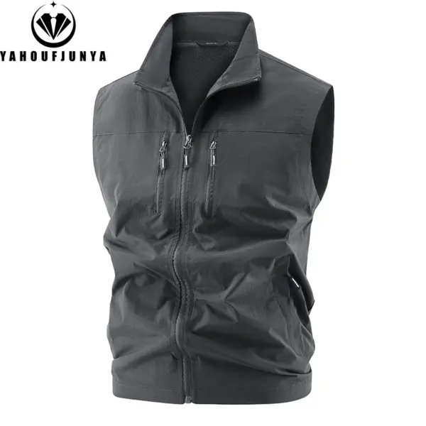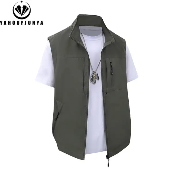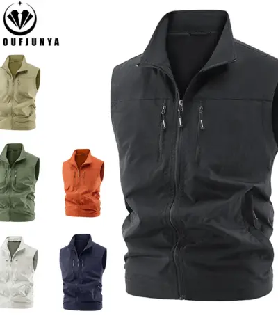 2025 New Summer Men Sleeveless Outdoor Leisure Stand Collar Vest Men Many Pocket Solid Color Breathable Thin Vest Male Waistcoat