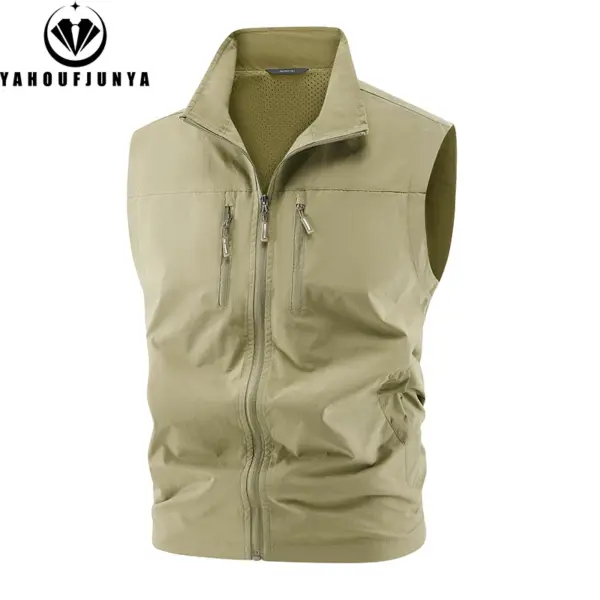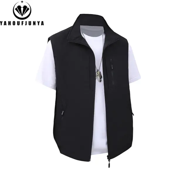 2025 Summer Men Thin Tool Outdoor Leisure Stand Collar Vest Men Camping Fishing Breathable Loose Sleeveless Vest Male Waistcoat