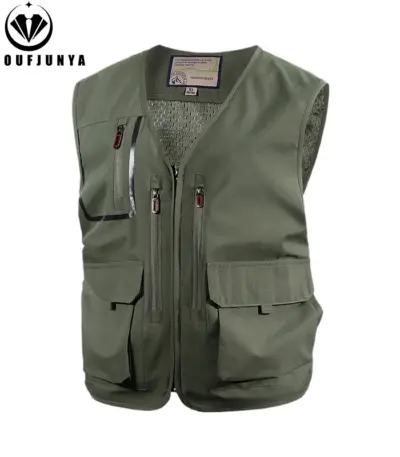 2025 Summer Men Many Pocket Thin Tool Outdoor Casual Vest Men Camping Fishing Breathable Loose Sleeveless Vest Male Waistcoat