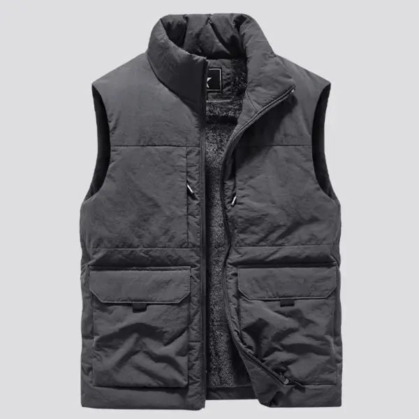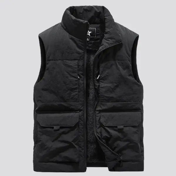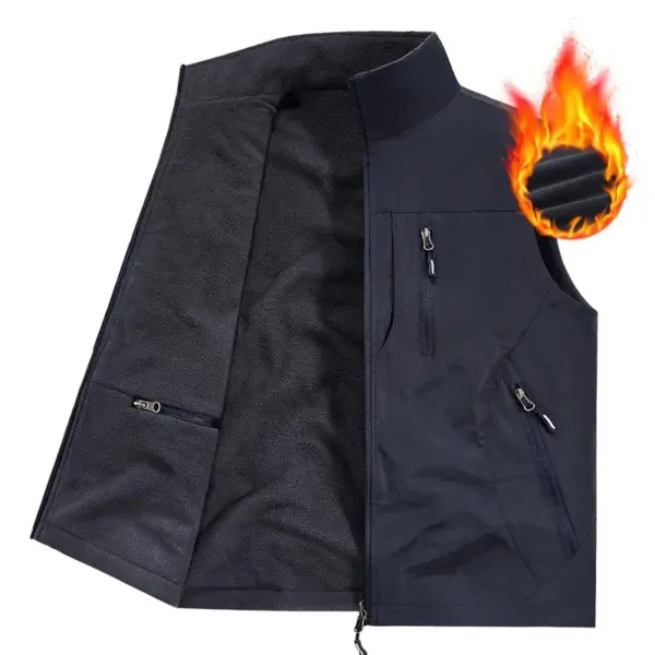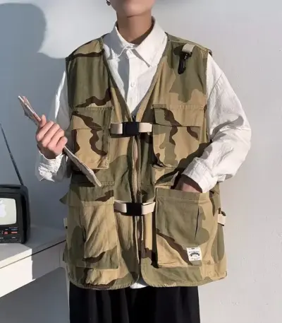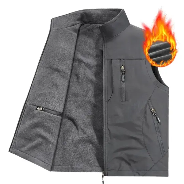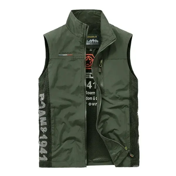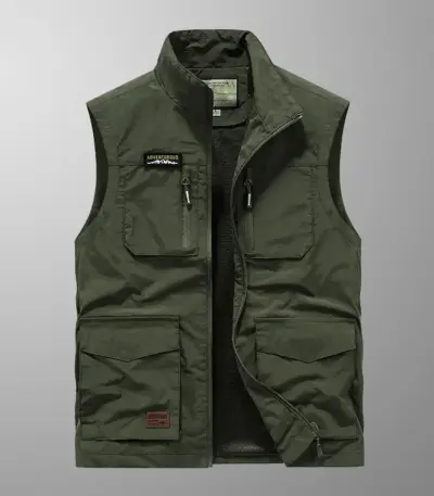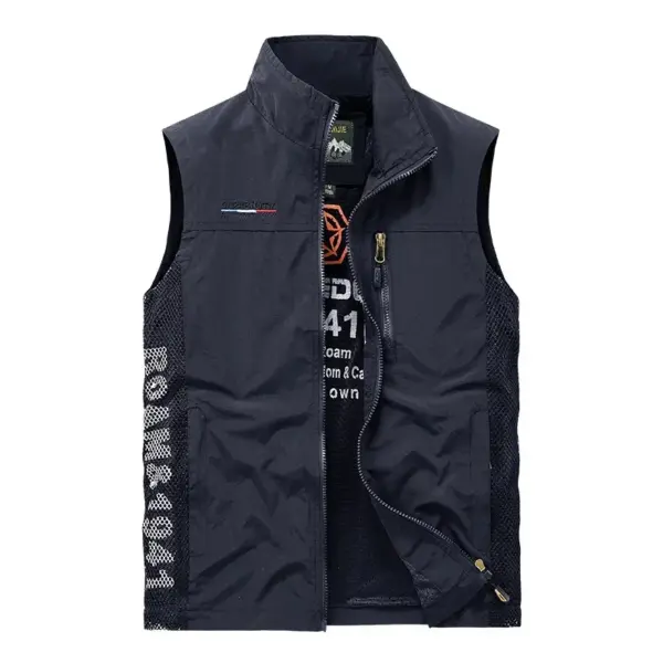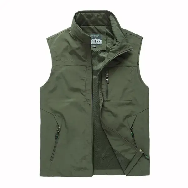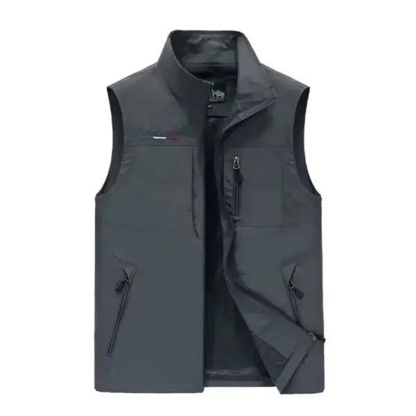 Casual Fishing Vest Men’s Loose Fit Photography Vest with Multiple Pockets Stand Collar Oversize Topwear Comfortable Outerwear