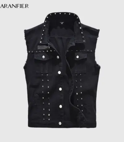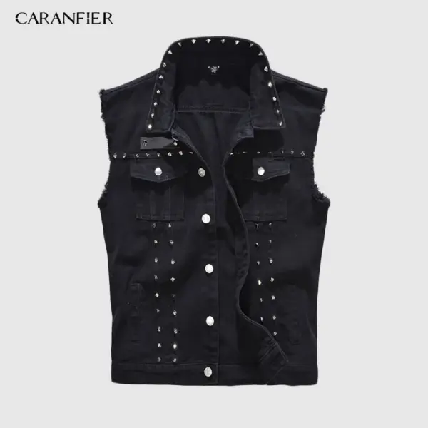 CARANFIER 5XL Denim Vest Men’s Punk Rock Style Rivet Cowboy Black Jeans Waistcoat Male Motorcycle Jacket Sleeveless Jean Coat