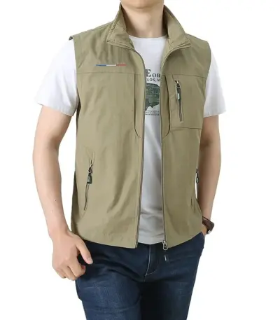 Casual Outdoor Fishing Men’s Vest Spring Autumn New Style Multi-Pocket Stand Collar Photography Advertising Customizable Logo