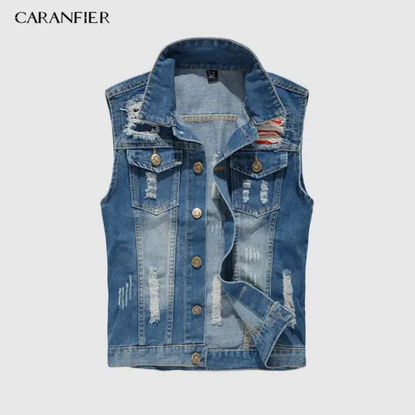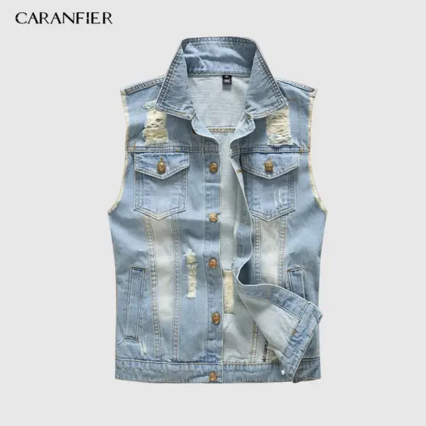 Brand New Men’s Ripped Denim Vests Hip Hop Streetwear Fashion Sleeveless Cotton Jacket High Quality Man Casual Cowboy Waistcoat