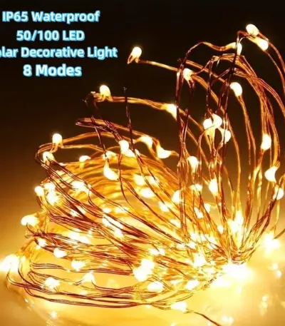 1PC 50/100 LED Solar Copper Wire String Lights with 8 Modes Outdoor Decorative Lighting for Garden Courtyard Parties Weddings