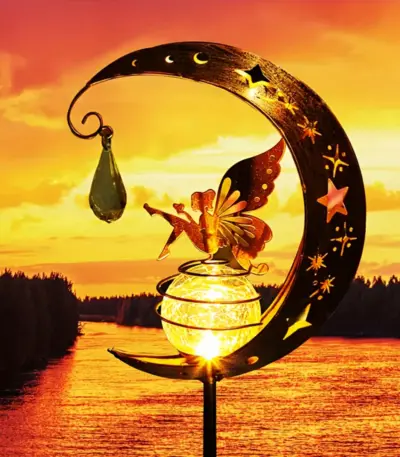 1pc Moon-Shaped Solar-Powered Metal Fairy Lantern – Waterproof LED Landscape Light Perfect for Patio and Yard Decor