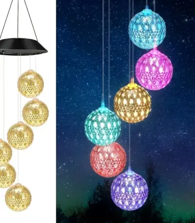 1pc Morocco Ball/Mirror Ball Solar Wind Chime Light Outdoor Garden Waterproof 6LED Hanging Lamp For Home Terrace Courtyard Decor