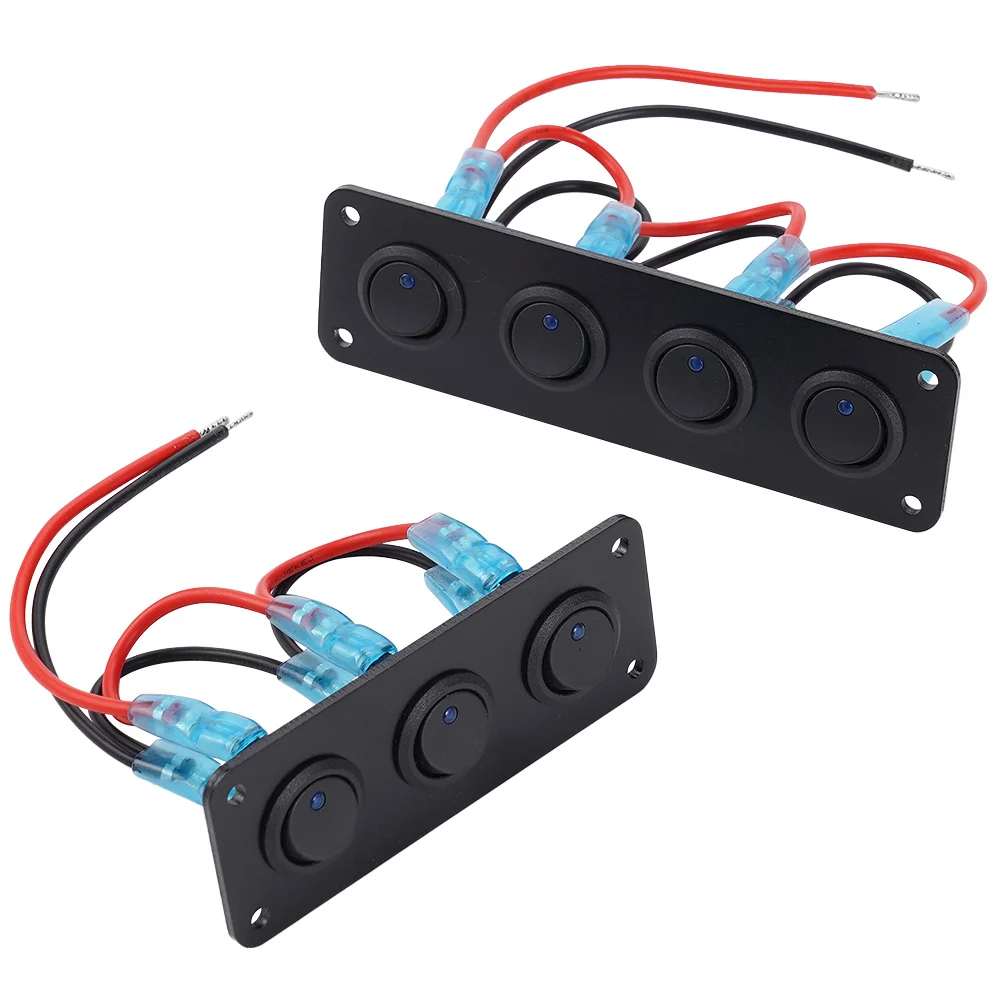 12V Waterproof 1-4 Gang Round Dash Rocker Toggle Switch Panel Blue LED Interior Parts For RV Yacht MarineCar Marine