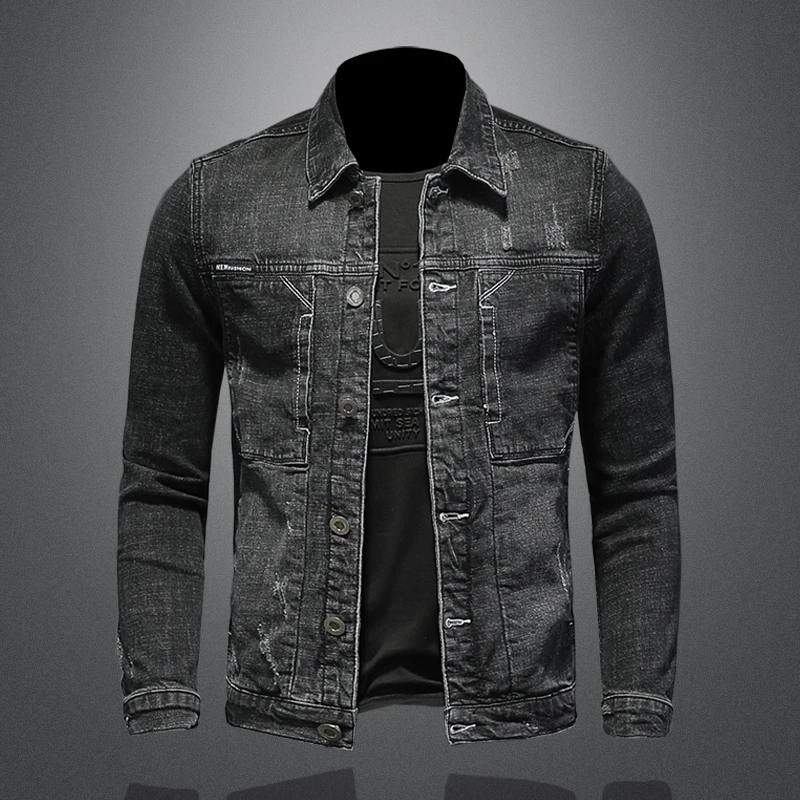 2024 High Quality Fashion Handsome All Fashion Boutique Denim Jacket Casual Black Grey Denim Coat Men Motorcycle Jacket