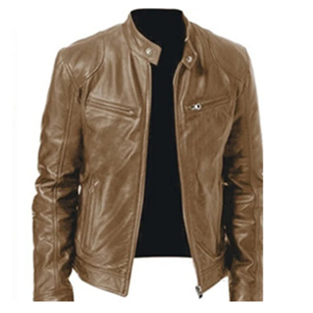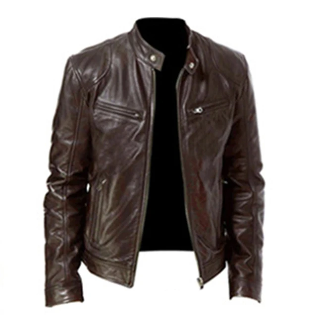 2024 Autumn Men’s Standing Collar Motorcycle Jacket PU Leather Motorbike Jacket Men Work Coats Outdoor Motorcycle Riding Clothes