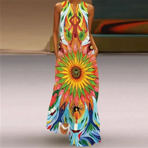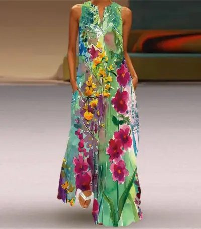 2024 New Summer Women’s Sleeveless V-neck Printed Sexy Dress Long Dress Cross Border Women’s Wear in Europe and America