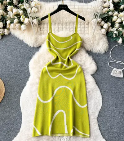 2024 Ladies Knitted Sheath Sundress Sleeveless Hotsweet Print Backless Slim Dress Fashion Elastic Beach Long Dress