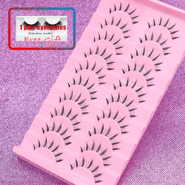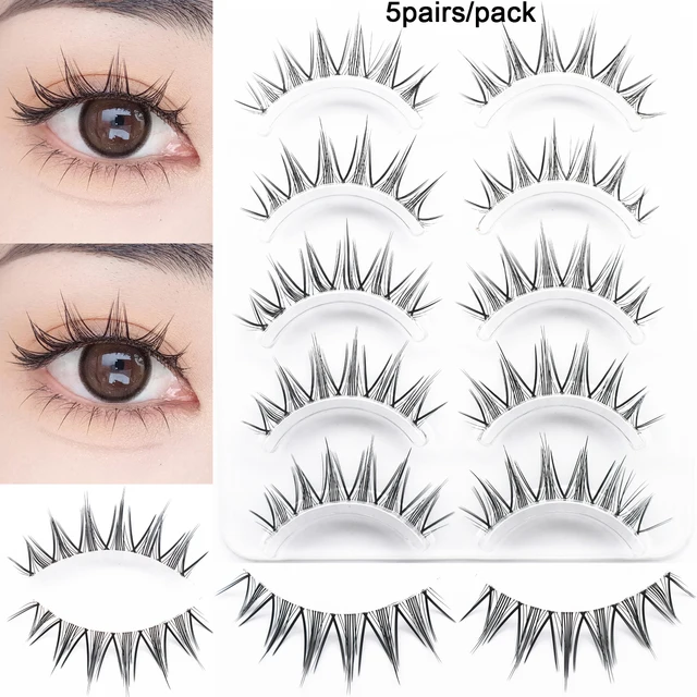 5 Pairs of Natural Slender Long Fish Tail Cross Eye Tail Elongated False Eyelashes Comic Fake Eyelashes