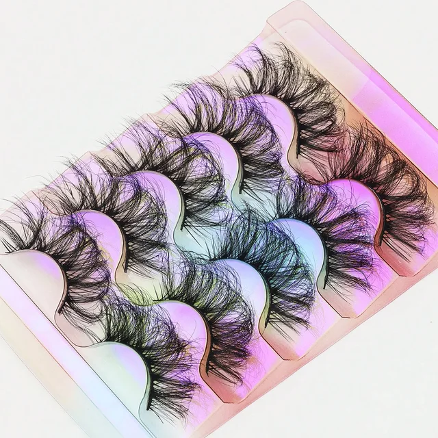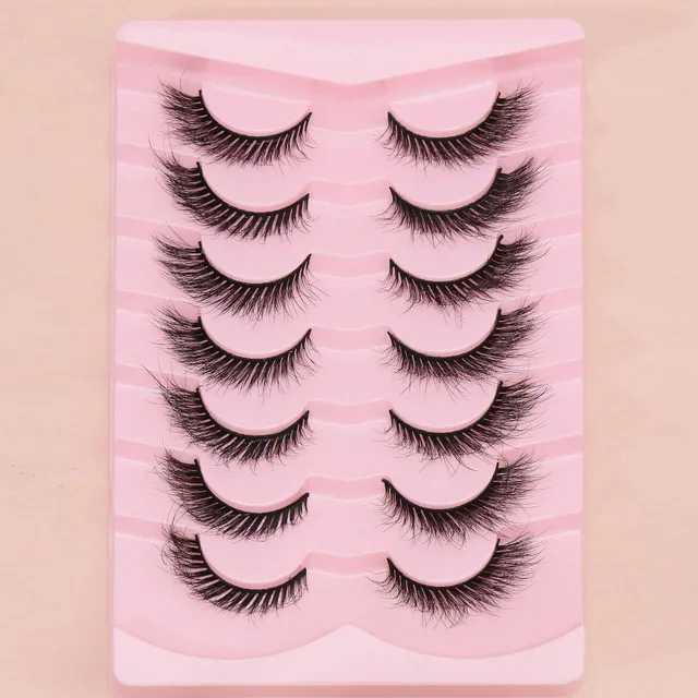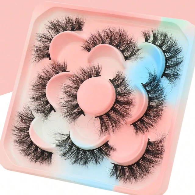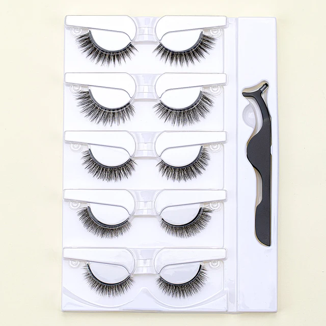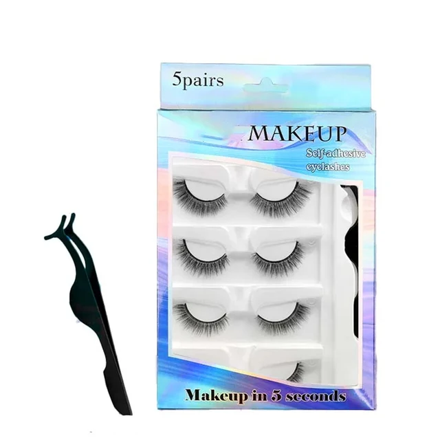 5 pairs Self-Adhesive Faux Mink Eyelashes Reusable Natural Cat Eye Fluffy Curly C Curl Lashes makeup tools