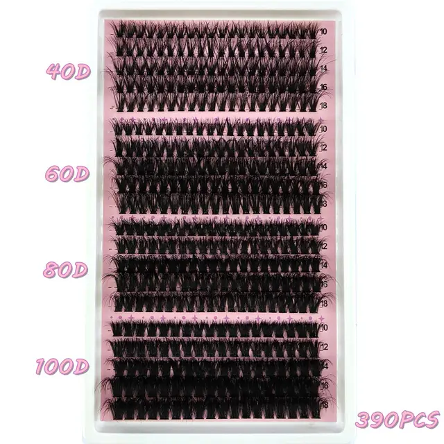 340/390pcs 40D-160D Mix 5D Fluffy Individual Lashes Clusters Extensions False Eyelash DIY at Home Cluster Makeup Eyelash Tools