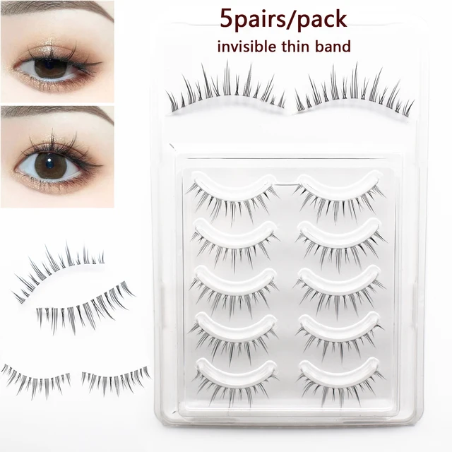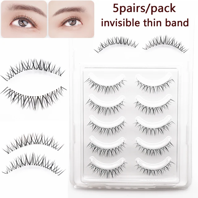 5pairs/Pack Eyelashes Invisible Thin Band False Eyelashes Wispy Natural Long Fake Eyelashes Makeup Faux Cils Korean Makeup Lash