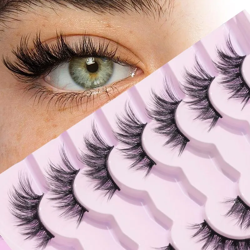 7pairs Natural Russian Strip Lashes Fluffy Mink Lashes 3D False Eyelashes Fluffy Volume Eyelashes Fake Eyelash Extension Make Up