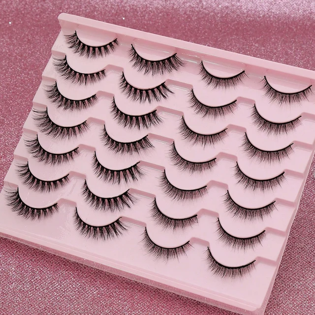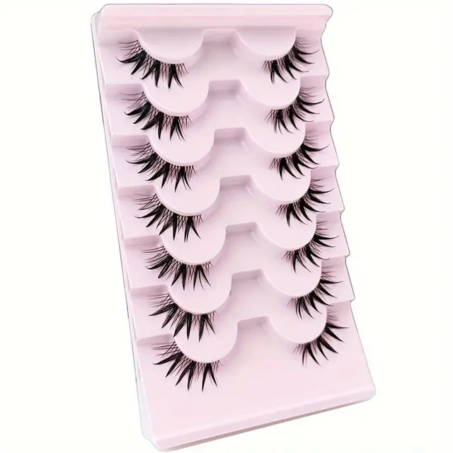 7 Pairs Half Eye Lashes With Transparent Stem Natural Long 3D Fairy Clusters Manga False Eyelashes Wet Look Cosplay Lashes