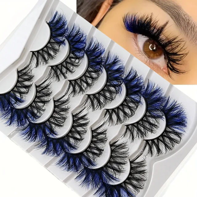 7 pairs Blue 22mm Colorful Fluffy False Eyelashes – Soft and Long-Lasting Makeup Extensions, agile eyes, the best Valentine’s