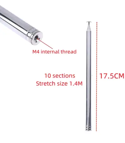 1.4m Telescopic Aerial Antenna Universal 10 Section TV Radio DAB AM/FM Antenna Receiver Telescopic Aerial Antenna Replacement