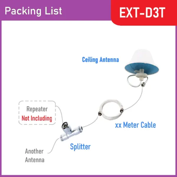HWATEL extra 2nd Panel Ceiling Antenna kit with 2 Way Divider Splitter For 2G 3G 4G 5G Mobile Phone Signal Booster Repeater