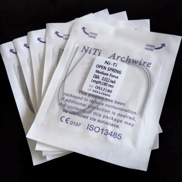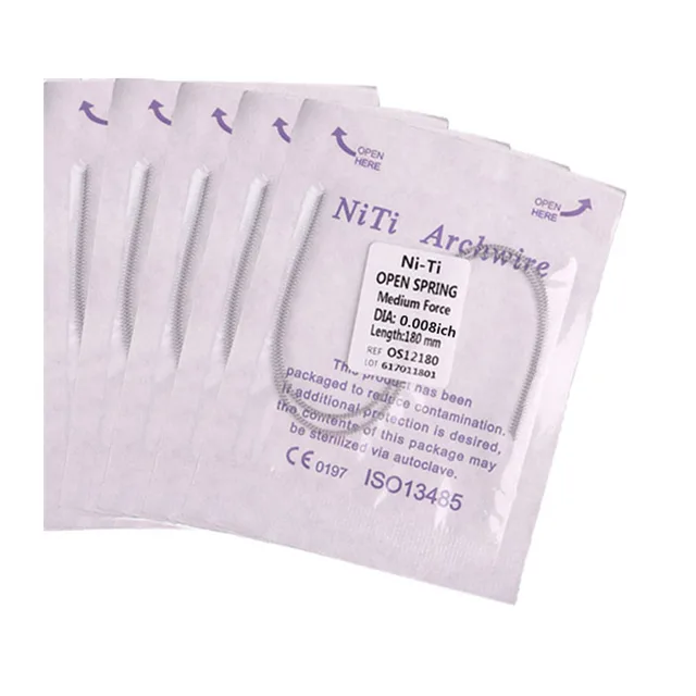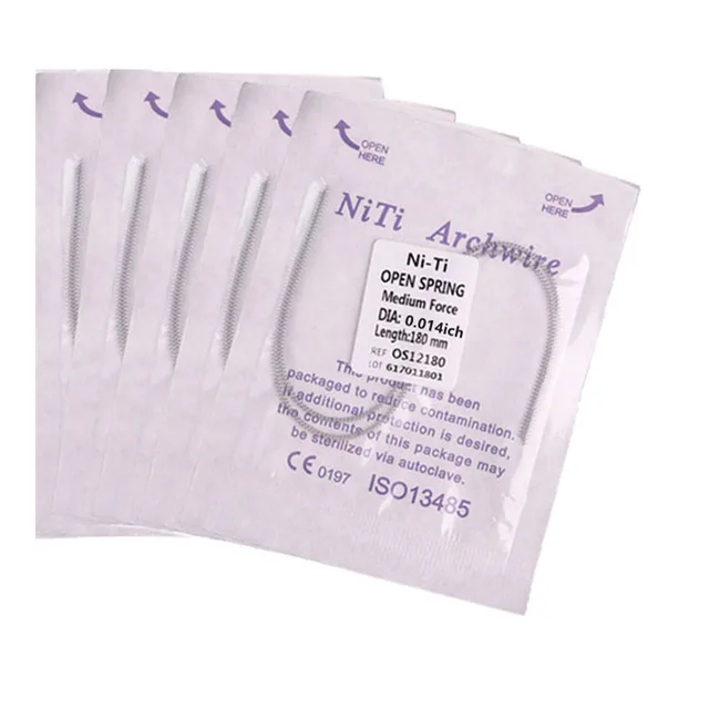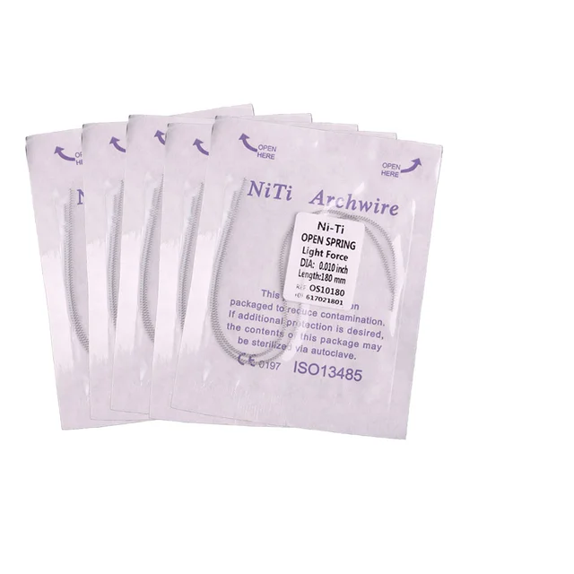 10Pcs/5Packs Dental Orthodontic NiTi Open Spring Elastic Open Coil Springs Medium Force Archwires 0.008/0.010/0.012/0.014*180mm