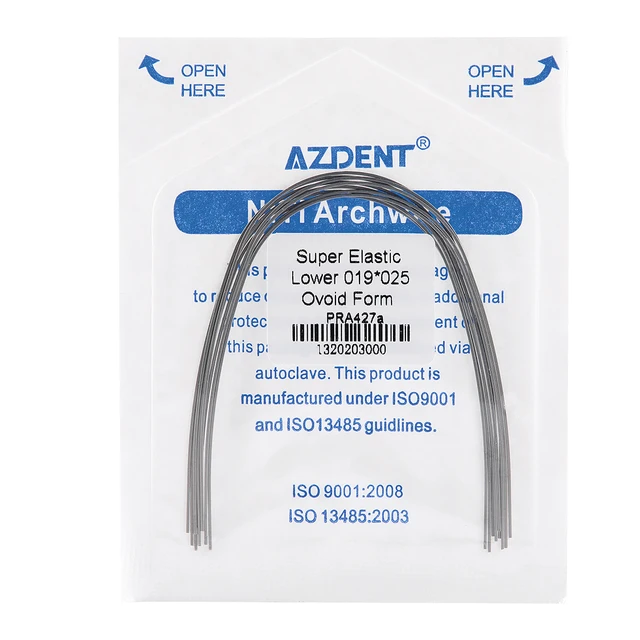 10PCS/Pack Dental Orthodontic NITI Round Rectangular Arch Wires AZDENT Super Elastic Ovoid Form Upper Lower