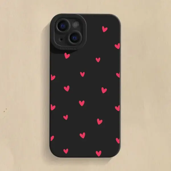 Black Love Heart Phone Case For iPhone 17 16 14 15 13 12 11 Pro Max X XR XS 7 8 15 16 Plus SE Shockproof Silicone Soft Cover