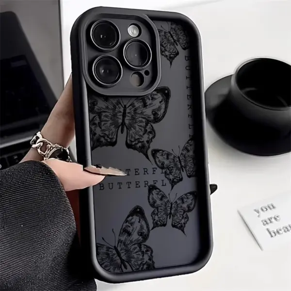 Black Butterfly Shockproof Silicone Phone Case For iPhone 11 15 Pro 14 16 12 13 Pro Max For iphone 13 Soft Cover Funda