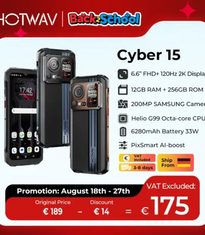 [Ship from Germany] HOTWAV Cyber 15 Rugged Phone G99 200MP PixSmart 6.6” 2K 120Hz Smartphone 24(12+12)GB 256GB Mobile Phone