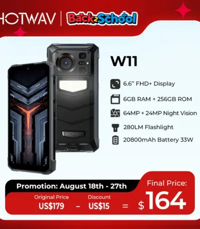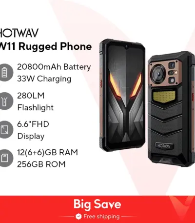 [World Premeire] HOTWAV W11 Rugged Phone 20800mAh 280LM Flashlight 6.6” FHD+ Smartphone 33W 24MP Night Vision Mobile Phone