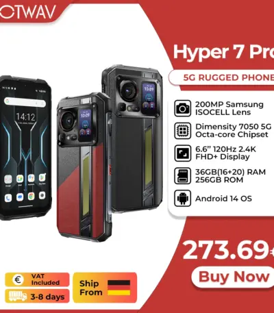 [Ship from DE] HOTWAV Hyper 7 Pro 5G Rugged Phone 200MP Android 14 6.6” 120Hz Smartphone 36(16+20)GB 256GB 10800mAh Cell Phone